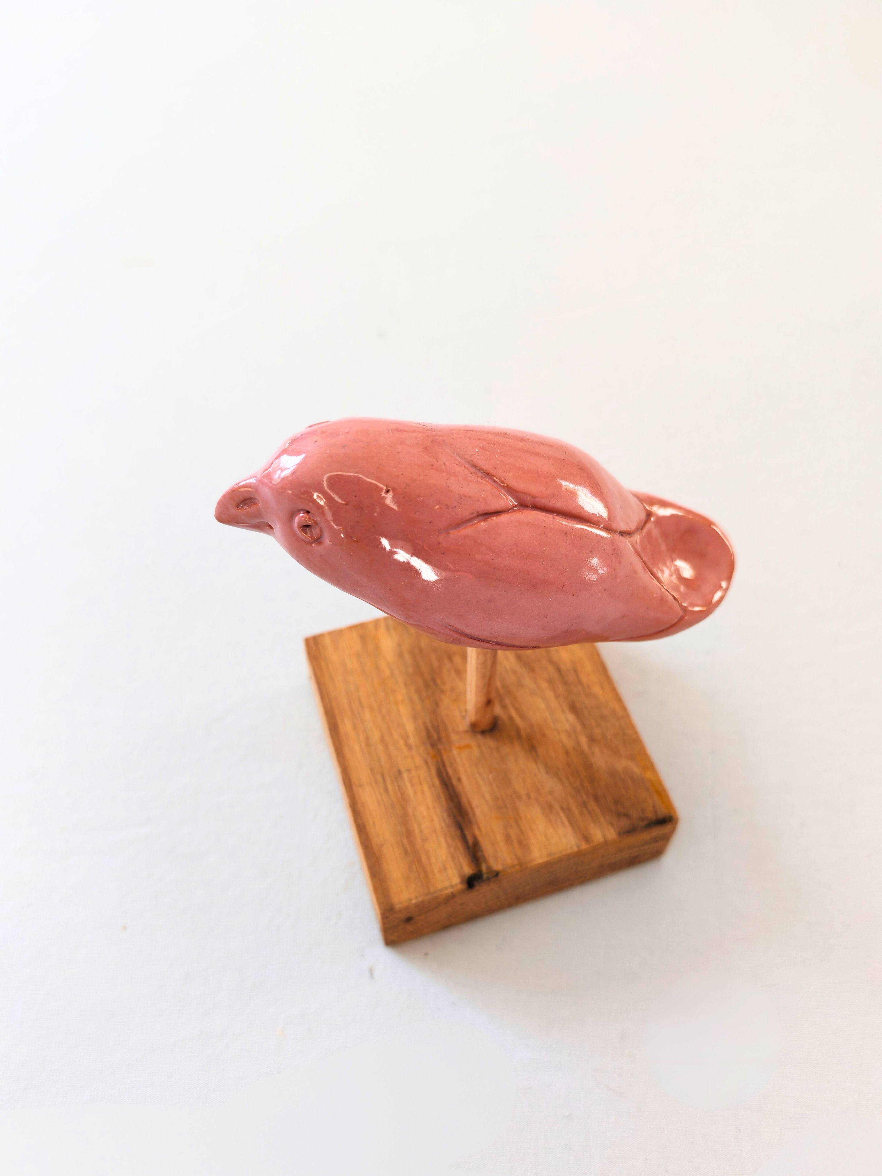 Ce petit oiseau en céramique, façonné et émaillé à la main, joue avec une douce teinte rose, apportant une touche raffinée et lumineuse à cette pièce unique.